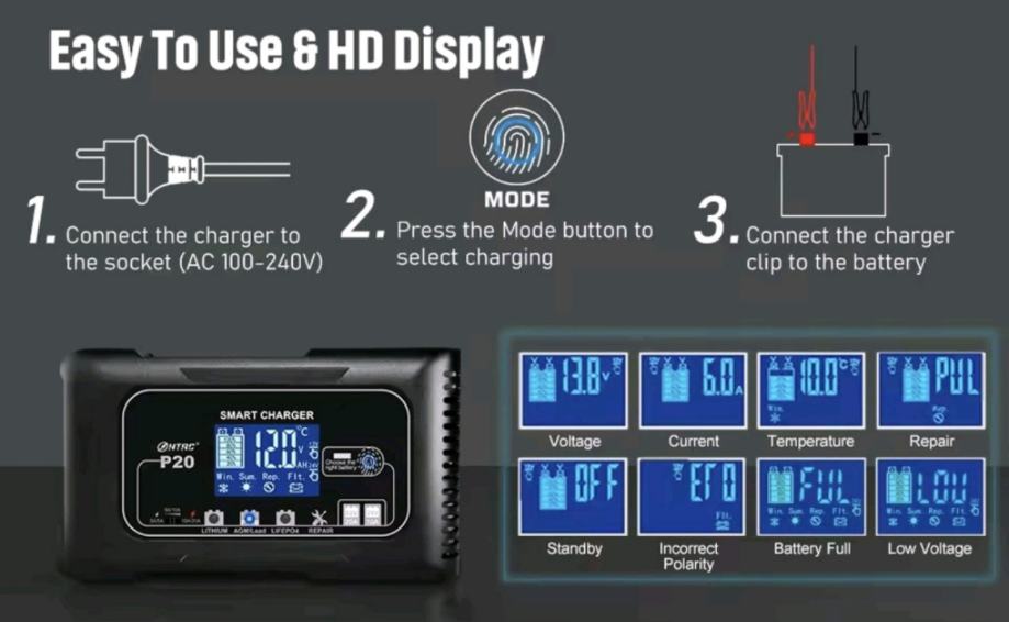 NA PRODAJU: Višenamjenski Pametni Punjač za Akumulatore – HTRC P20 (12V/24V)