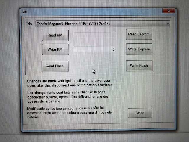 - Čitanje/pisanje km, - čitanje/pisanje eeproma, - čitanje/pisanje flash za nadzornu ploču Renault Fluence.