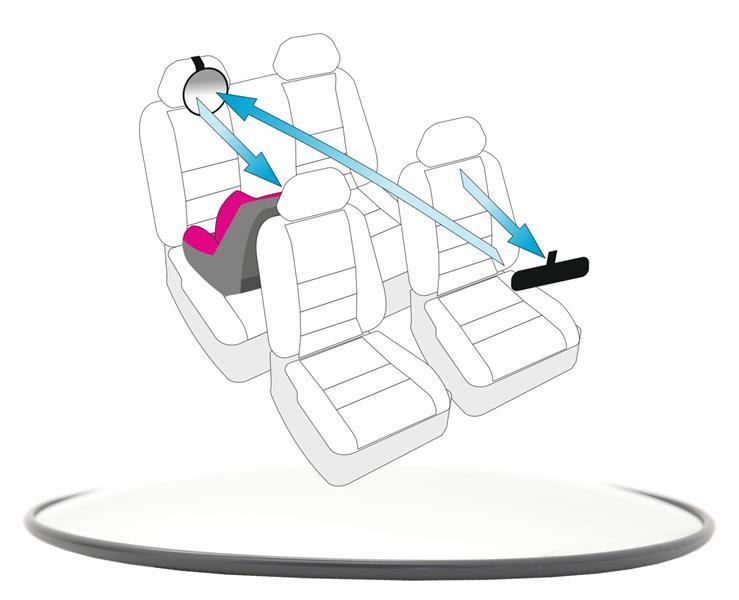 Ogledalo se jednostavno pričvrsti remenom s kopčom iza naslona za glavu.