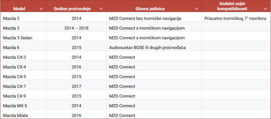 Što radi: Omogućuje priključenje prednje i/ili stražnje kamere (ako nemate tvornički ugrađenu) na originalni ekran u Mazdama s MZD Connect sustavom.