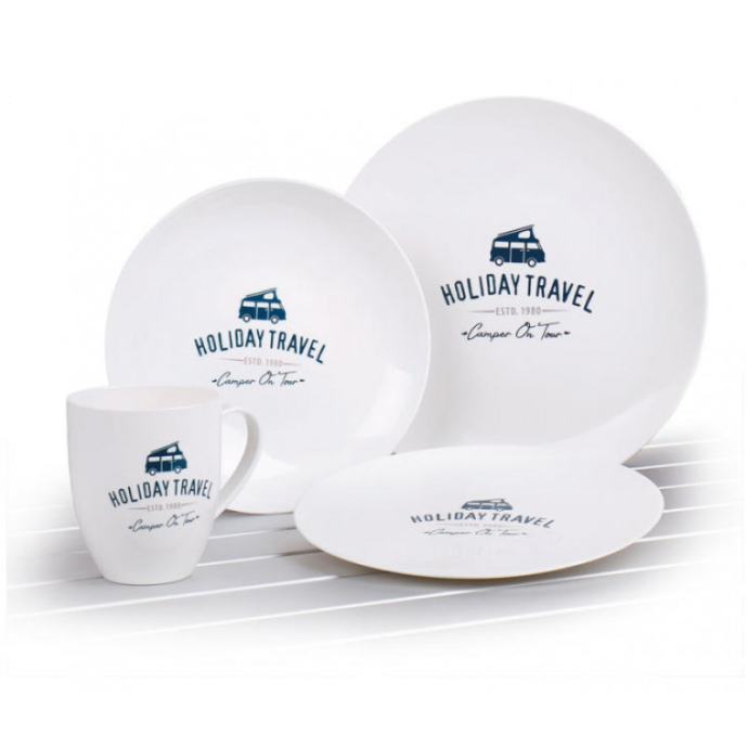 Set krožnikov Holiday Travel za dve osebi je odličen za kampiranje, saj je izdelano iz biorazgradljivega materiala, plastike PLA, in je odporno na udarce. Primerno za mikrovalovno pečico in pomivalni stroj. Brez BPA.