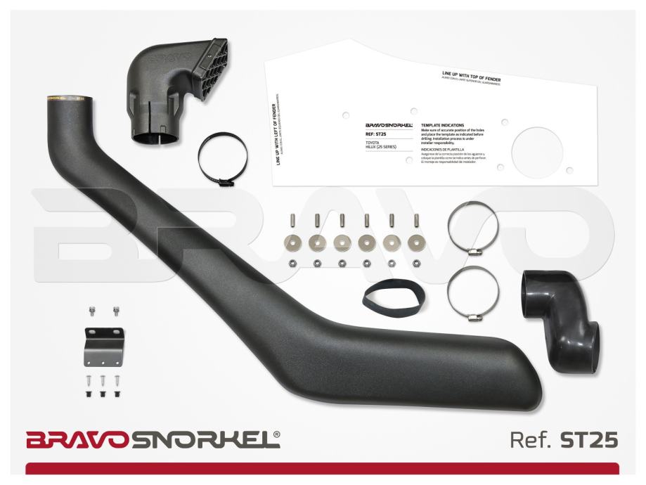 Bravo Snorkel vodeći je proizvođač specijaliziranih usisnika u Europi. Uz razvoj i kontrolu proizvodnje iz svoje baze u Španjolskoj, Bravo nudi asortiman proizvoda visoke razine, zajedno s petogodišnjim jamstvom. Instalacija je jednostavna s isporučenim predloškom.