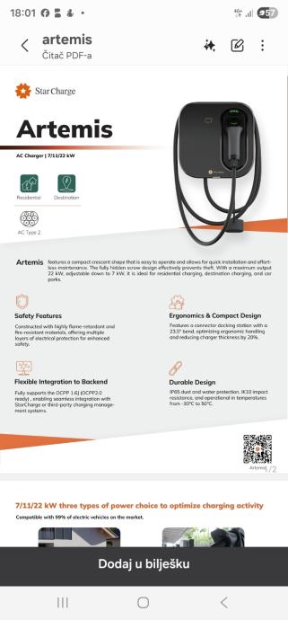 Prodajem StarCharge Artemis 7 kW AC punjač za električna vozila.