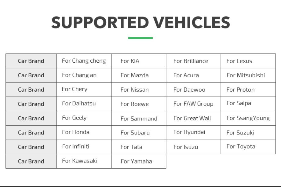 za Acura za Brilliance za Chang an za Chang cheng za Chery za Daewoo za Daihatsu za FAW Group za Geely za Great Wall za Hondu za Hyundai za Infiniti za Isuzu za Kawasakija za Kia za Lexus za Mazdu za Mitsubishi za Nissan za Proton za Roewea za Saipu za Sammanda