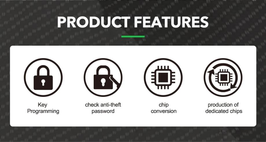 Tango transponder ključa za automobil uglavnom radi programiranje ključeva, provjerom lozinke protiv krađe, pretvaranjem čipova, proizvodnjom namjenskih čipova