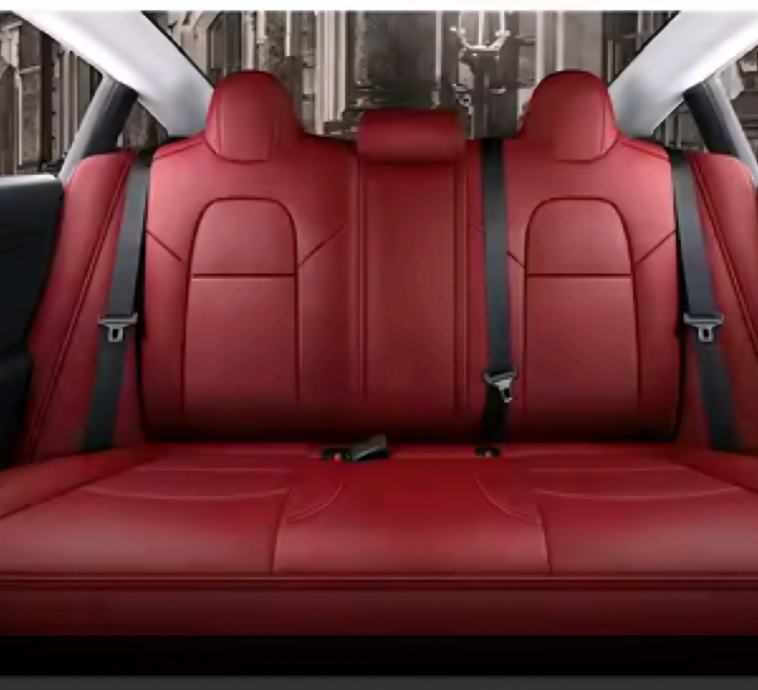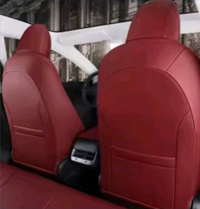 Navlake za sjedala originalna veličina i oblik za Tesla model 3 2016-2023 g boja bordo kombinacija prave kože i eko kože.Sjedalo i naslon prava koža perforirana