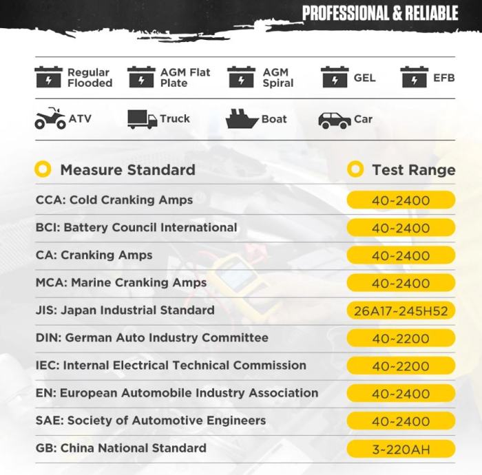 Može testirati 12V baterije, prikladne za razne uobičajene modele i opremu.