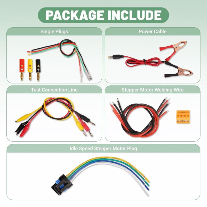 - Test fuel injectors: including 12V fuel injectors for gasoline vehicles and 12V 24V fuel injectors for diesel vehicles.
