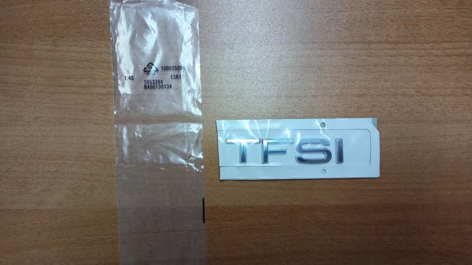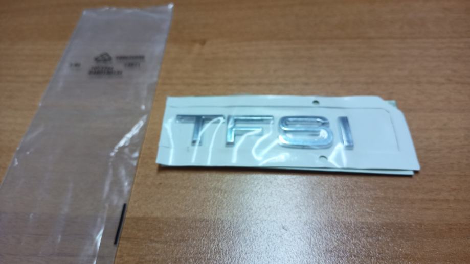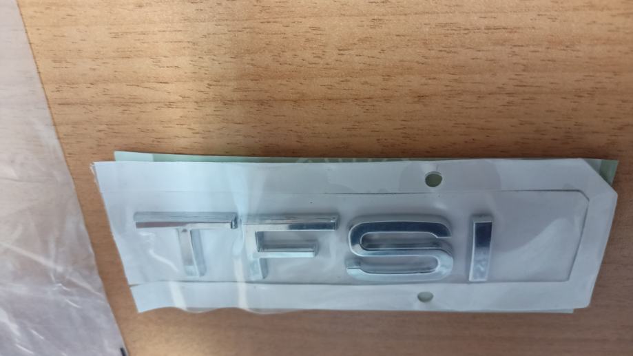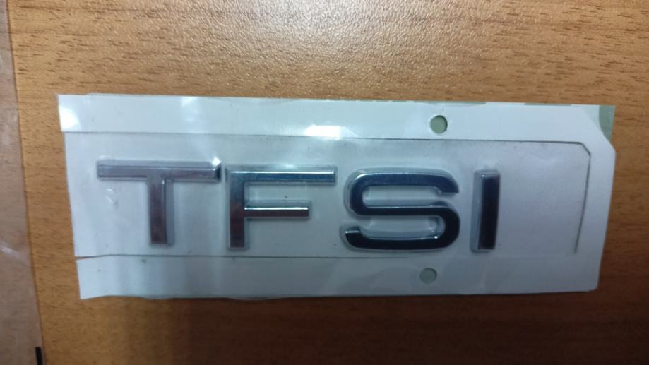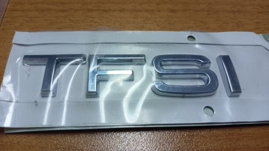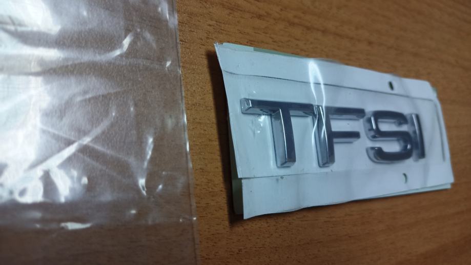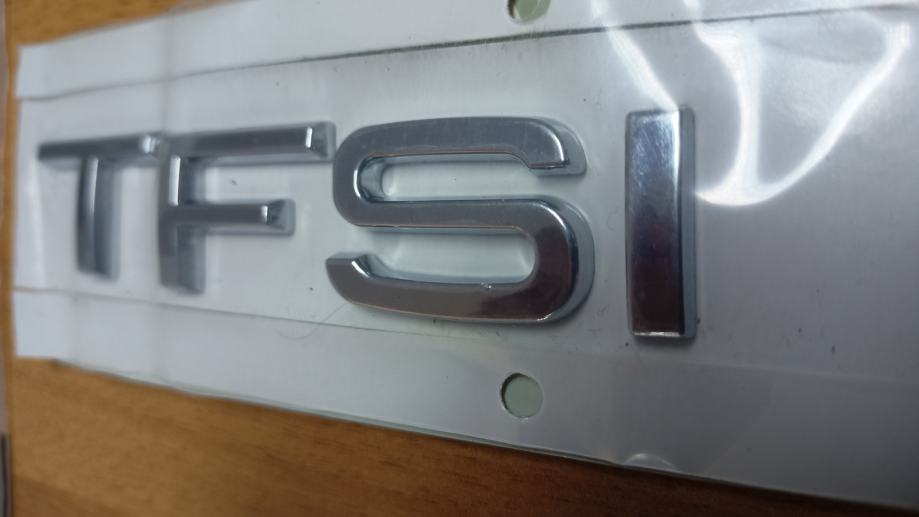 TFSI logotip, oznaka za Audi, VW i još neke modele automobila, nov, nekorišten. Slova su napravljena od kvalitetnog ABS materijala u krom sjaju, te se lako i čvrsto zalijepe za karoseriju automobila. Dimenzije su ca. 25 mm x 20 mm x 5 mm. Obzirom da se mogu koristiti i pojedinačno, mogu služiti i u druge svrhe. Cijena 8 eura. Molim zvati na mob. 091/2356157