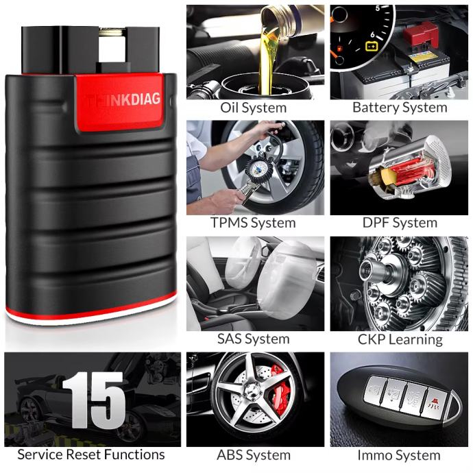 ThinkDiag FULL namijenjen je korisnicima koji žele više od osnovne dijagnostike – osim potpune sistemske provjere, omogućuje i napredne servisne funkcije te profesionalne mogućnosti koje se koriste u autoservisima. Uključuje preko 15 servisnih funkcija poput resetiranja servisnog intervala i ulja, DPF regeneracije, BMS (registracija baterije), SAS (kalibracija senzora kuta volana), EPB reset električne ručne kočnice, adaptacije leptira gasa i mnoge druge funkcije ovisno o vozilu.
