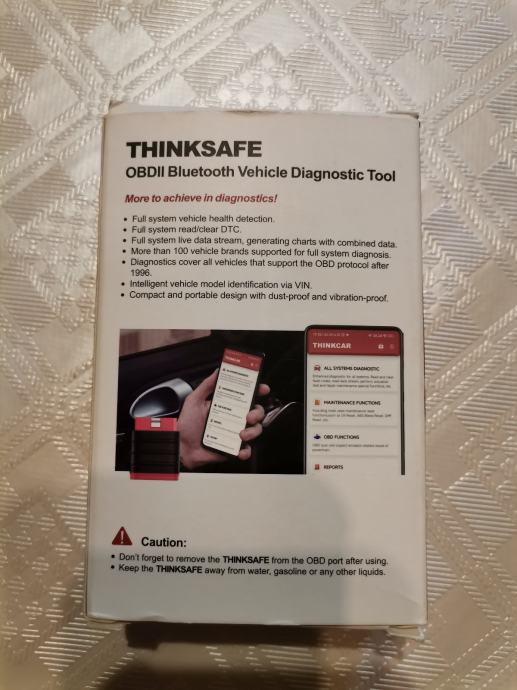 Prodajem Thinksafe autodijagnostiku preko mobitela. Podržana su sva osobna i laka teretna vozila od kraja devedesetih do najnovijih. Možete čitati i brisati greške svih sustava (motor, ABS, Airbag, klima, multimedia i sl.) i pratiti parametre rada. Osim toga dostupno je i 5 reset funkcija. Licenca je doživotna i nema godišnje nadoplate.