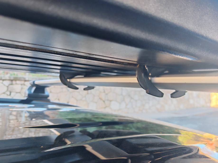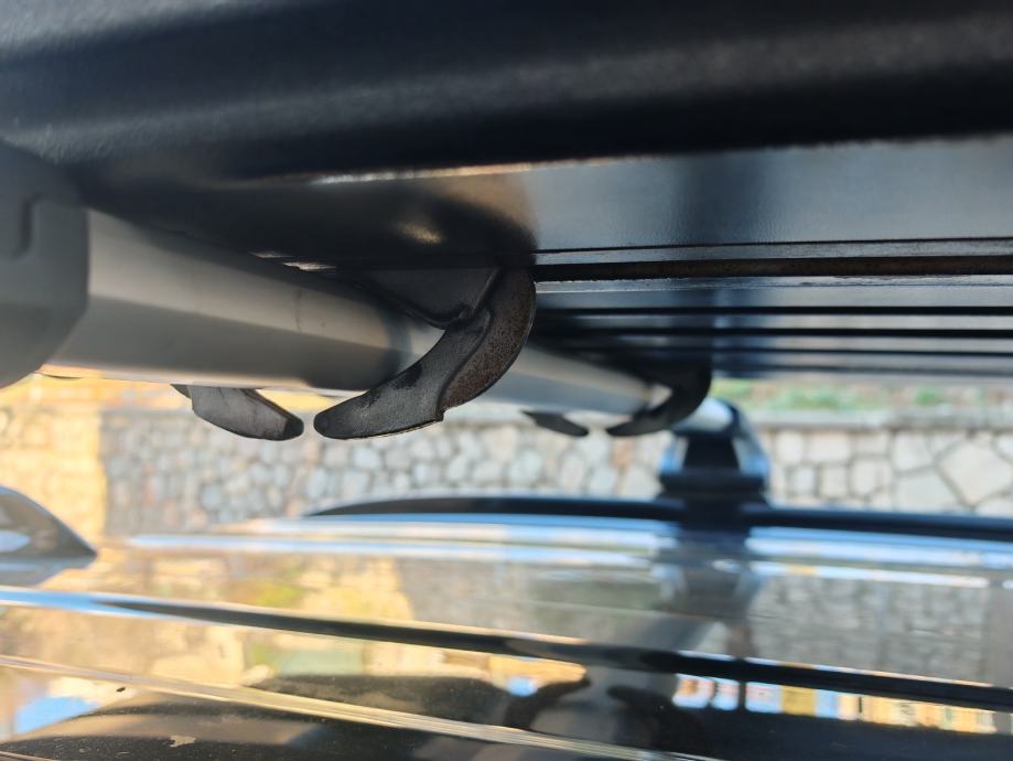 Dozvoljena nosivost 75kg. Aerodinamična. 2 ključa. Zaključavanje u 3 točke jednim okretom ključa. Opremljena je sistemom klješta kojima se pričvršćuje za krovne nosače jednostvanim zavrtanjem kotačića u prostoru kutije. 2 gurtne za osiguravanje tereta.