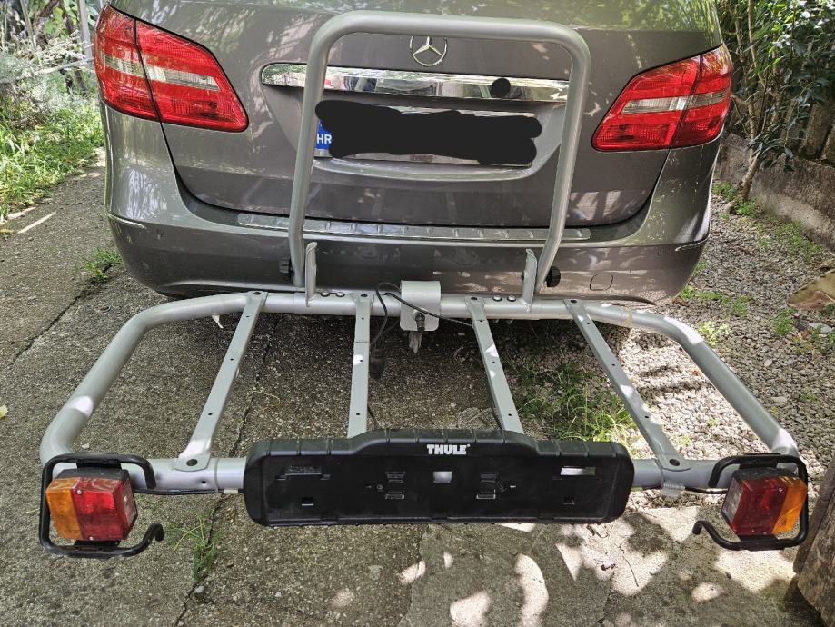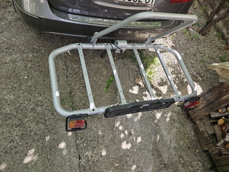 Thule platforma, vješa se na auto kuku. Prikladna za vožnju bicikala, uz dodatak kutije pretvara se u dodatni prtljažni prostor. Jednostavna za montažu. Korištena samo u ljetno doba, očuvana.