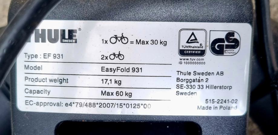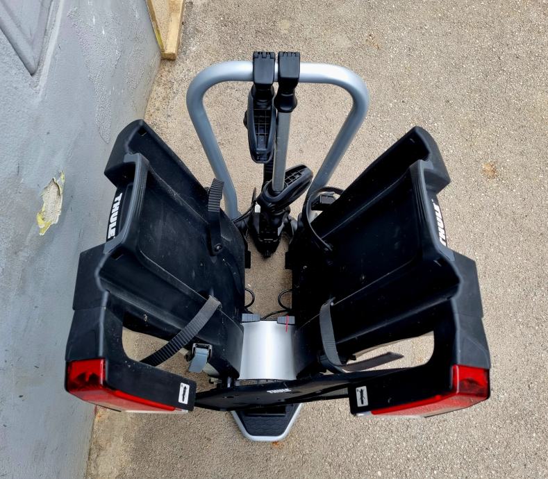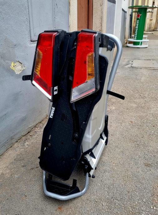 Nekorišteni i potpuno novi Thule EasyFold 931 nosač za bicikle. Nosač se montira na kuku od vozila (potrebno je imati je na vozilu). Jednostavan za korištenje i montažu.