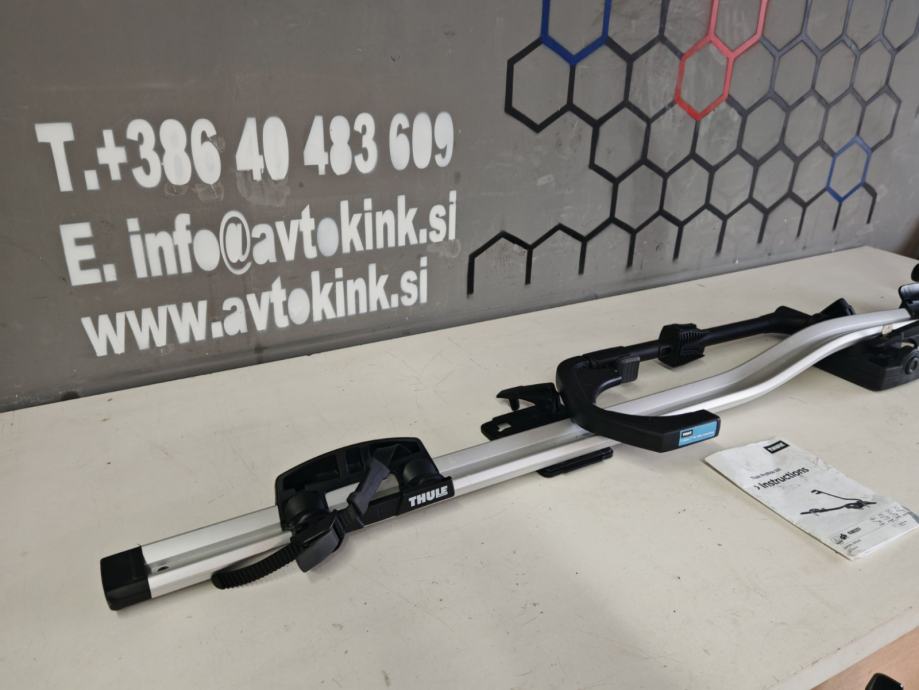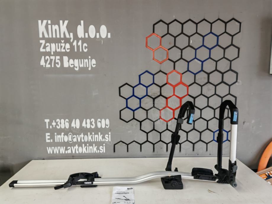 Rabljen nosač bicikla THULE UpRide 599, montaža bicikla samo na kotače (bez kontakta sa ramom).