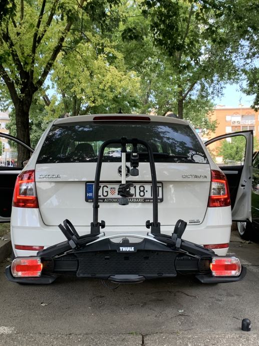 Prodajem rabljeni nosač bicikla THULE VeloCompact 925 sa nagibnom funkcijom za auto kuku sa 7 pinskim konektorom (posjedujem i poklanjam 13 na 7 pinski adapter), nosivost 46 kg, za 2 bicikla. Pogodan i za električne bicikle. Upute za montažu i svi ključevi uključeni.