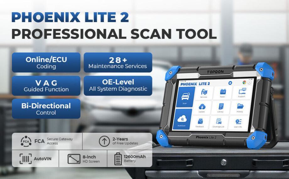Phoenix LITE 2 je TOPDON-ov najnoviji dijagnostički sustav. Ovaj profesionalni dijagnostički uređaj razlikuje se od ostalih skenera s cijelim nizom inovativnih funkcija, kao što su kodiranje upravljačkih jedinica (ECU), dijagnostika aktuatora (aktivni testovi), 28 najčešće korištenih servisnih funkcija i široka kompatibilnost vozila. Kvaliteta i tehnička podrška su najviših standarda te su vrlo korisni za iskusne hobiste, automehaničare, majstore, autoelektričare i vlasnike radionica.