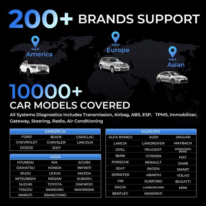 *** Ostale napredne značajke: Benz (varijantno kodiranje); Porsche svi modeli nakon 2011. (Vođeno rješavanje problema za DTC); i više.
