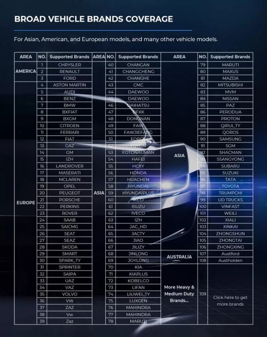 Smart podržava funkcije programiranja temeljene na oblaku za 13 marki automobila, kao što su Mercedes-Benz, BMW, Volkswagen (Audi Skoda Seat), Porsche, Land Rover Jaguar, Nissan , Subaru, Renault, i još mnogo toga!