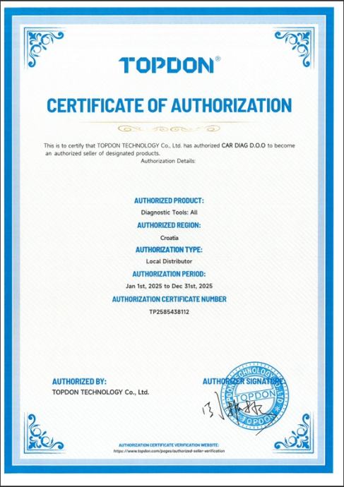 CarDiag je autorizirani i certificirani distributer za Topdon Hrvatska uređaje, autorizaciju provjeriti na zadnjoj slici!