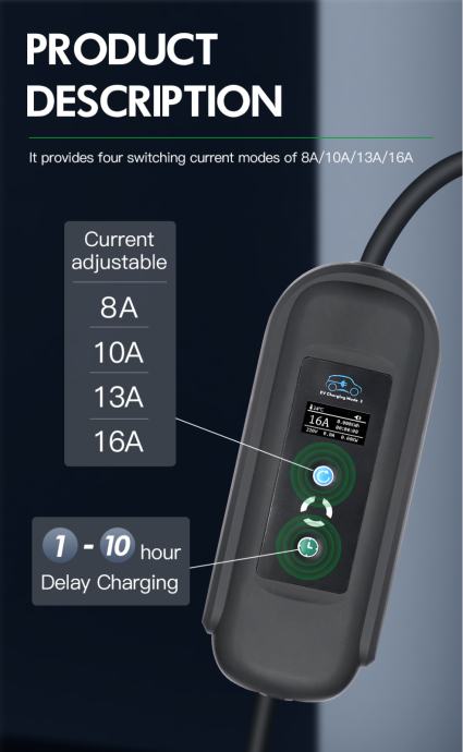 - Promjena struje punjenja: 8A/10A/13A/16A (podesivo)