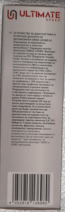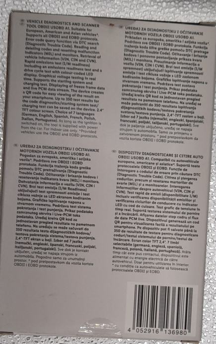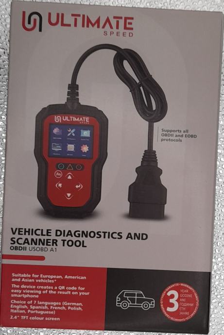 Prodajem Ultimate Speed Vehicle Diagnostics and Scanner Tool OBDII USOBD A1 – novo, zapakirano, nikada neotvoreno i nekorišteno. Uređaj je ispravan i pod garancijom, idealan za čitanje i brisanje grešaka na vozilima koja podržavaju OBDII / EOBD protokole (europska, američka i azijska vozila).