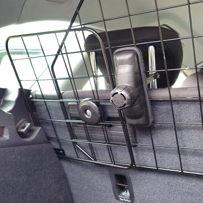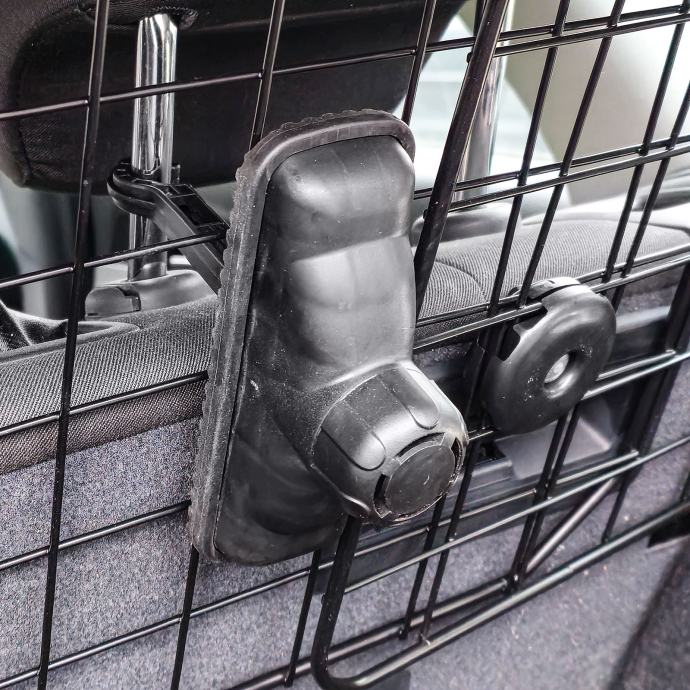 Rešetka je beskonačno podesiva po širini i može se fleksibilno prilagoditi različitim vrstama vozila. Sigurno je pričvršćen kukicama na metalne nosače naslona za glavu stražnjih sjedala – bez bušenja ili trajnih promjena na vozilu.