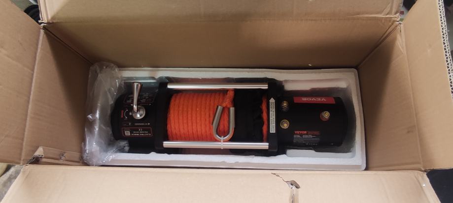 Novo nekorišteno, samo raspakirano električno vitlo 12V 13500 lbs / 6100 kg, 24 m sintetičko uže, bezlični i žičani daljinski, kuka i vodilica.