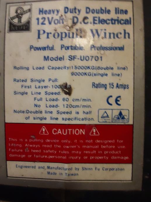 Vitlo za auto-kombi-kamion 12V -snaga 1 sajla 9tona_dupla sajla 15tona