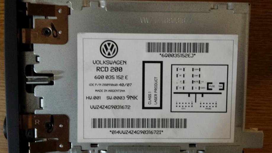 prodajem original vw radio sa kodom, model rcd 200 mp3, plavo-crveno osvjetljenje, za polo, caddy, golf, passat, bora...odlican...prodaja zbog promjene auta...