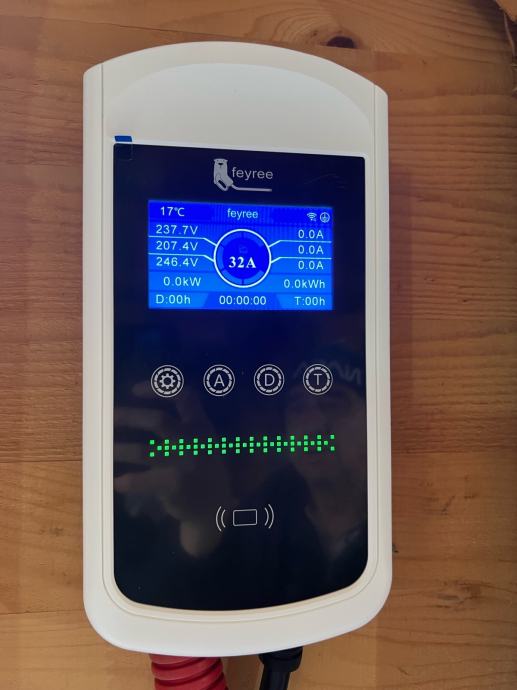 Takoder veliki ekran za pracenje podataka o jacini struje, kolicini primljenih kW, moguce ograniciti snagu, povezivanje sa aplikacijom za daljinsko zaustavljanje i pocetak punjenja sa odgodom