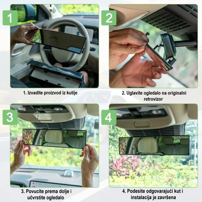 ✿ Ovo konveksno ekstra veliko unutarnje ogledalo pruža Vam širi kut pogleda i savršenu vidljivost.