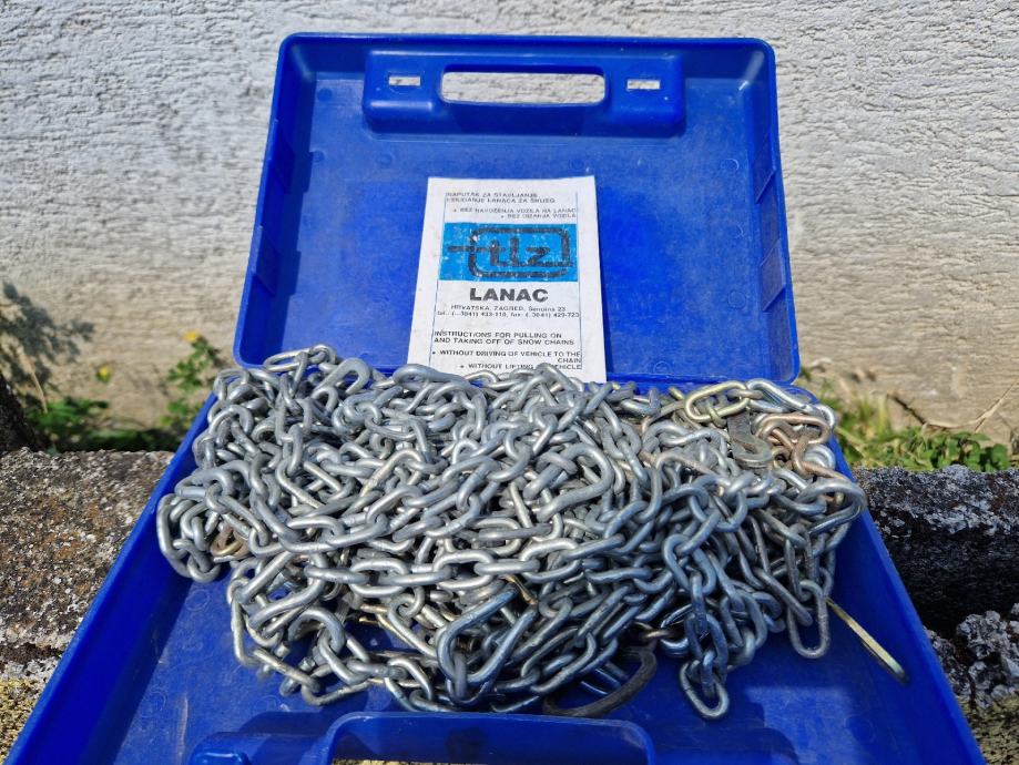 Potpuno ispravni lanci za snijeg..nikad koristeno..made in Croatia..skupina 08...15 cola..sve vidljio na slikama..saljem hp postom..ili tiskom nakon uplate..