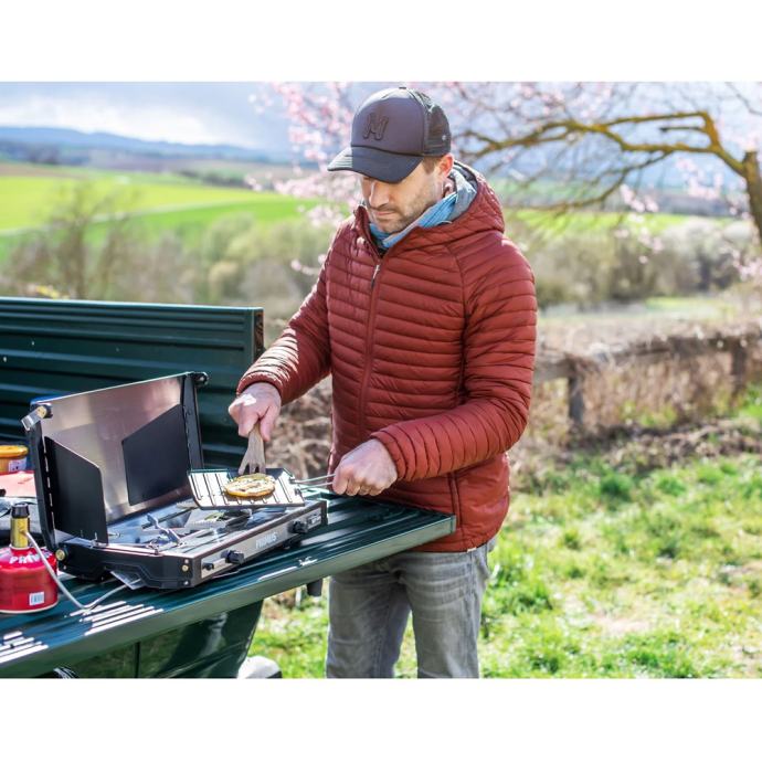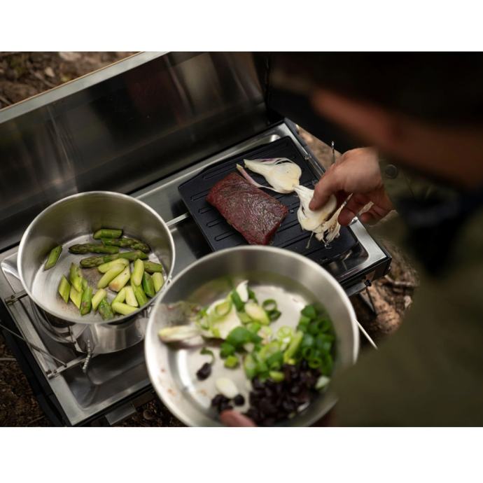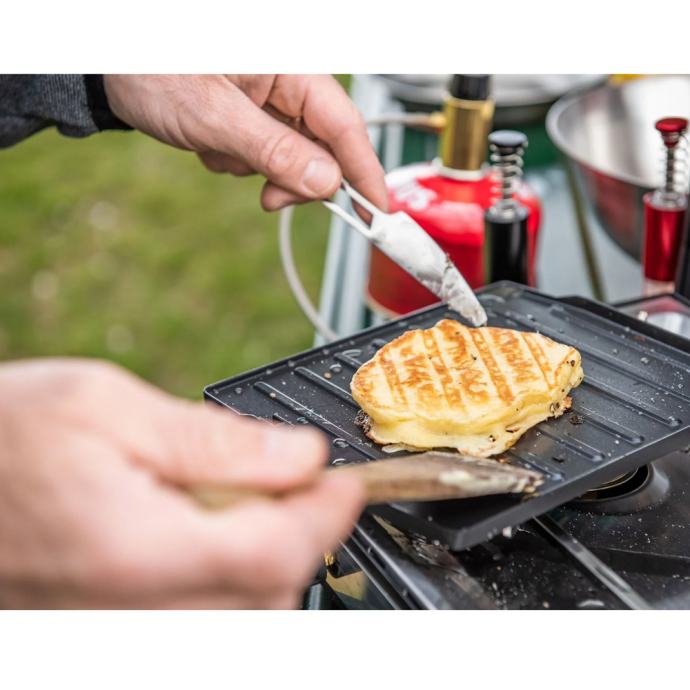 Lito aluminijasto rešetno ploščo za žar lahko uporabite na poti in z njo pripravite okusne jedi. Prednost Campfire rešetne plošče je, da poskrbi za enakomerno porazdelitev toplote po površini, zaradi neoprijemljive površine pa se hrana ne zapeče. Čiščenje je zato res enostavno. Plošča je združljiva s pečjo Tupike in pečmi z dvema gorilnikoma.