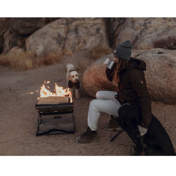 Prenosni žar Kamoto OpenFire Pit je zelo priročen, saj ga lahko vzamete s seboj na izlet ali kampiranje. Z njim lahko varno zakurite ogenj, saj ima žar vgrajen podstavek za odvečni pepel, tla pa ščiti pred vročino ali žerjavico.