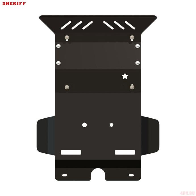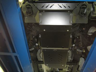 Komplet zaštite podvozja izrađen je od kvalitetnog čelika debljine 2,5-3mm i pričvršćen je na izvorne rupe u vozilu. Servisni otvori omogućuju servisiranje vozila bez skidanja.
