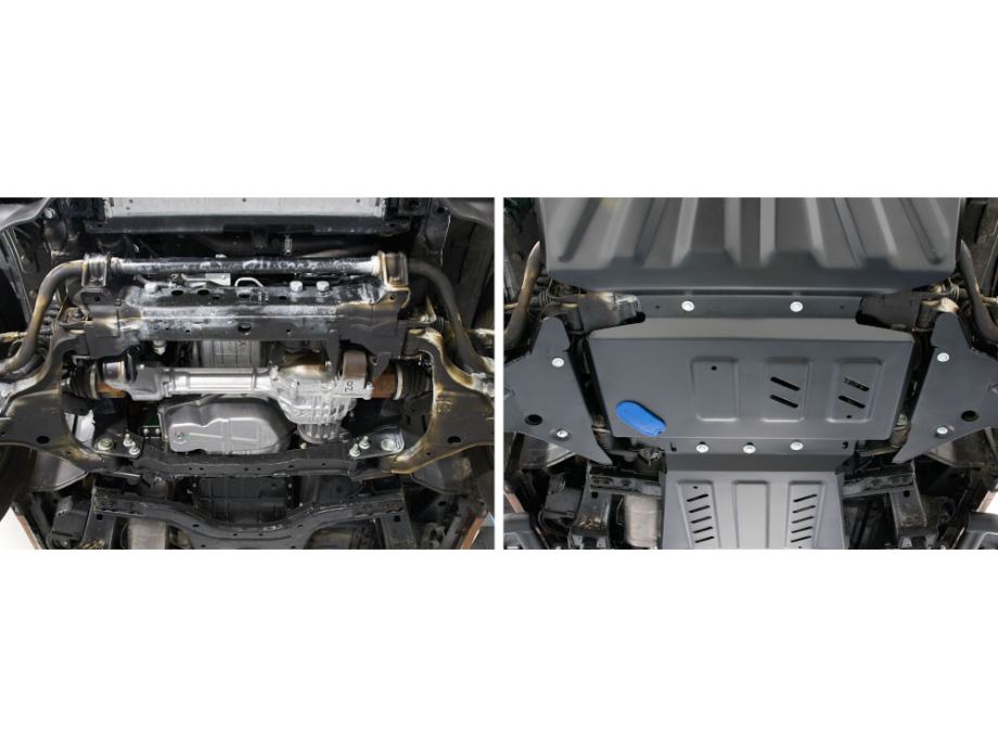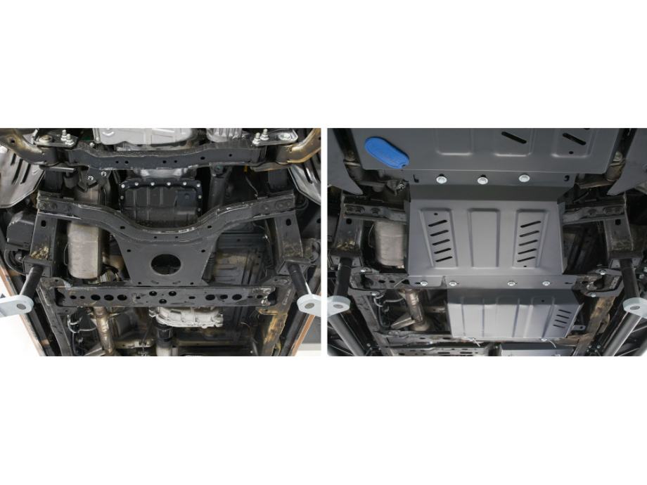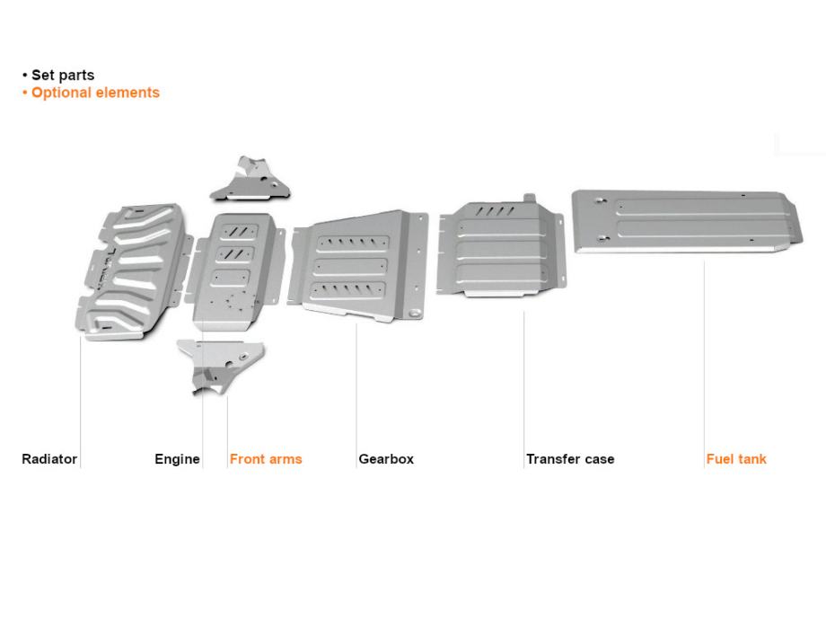 Komplet zaštite podvozja izrađen je od kvalitetnog aluminija debljine 3mm i pričvršćen je na izvorne rupe u vozilu.