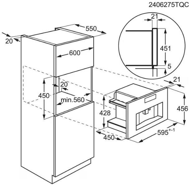 Dimenzije za ugradnju: 450x560x550 mm
