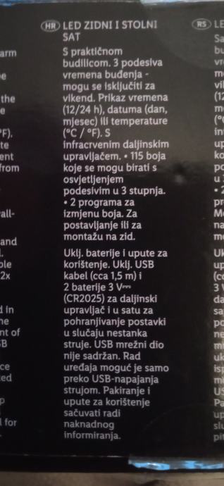 S praktičnom budilicom. 3 podesiva vremena budenja - mogu se isključiti za vikend. Prikaz vremena (12/24 h), datuma (dan, mjesec) ili temperature (°C/°F). S infracrvenim daljinskim upravljačem.. 115 boja koje se mogu birati s osvjetljenjem podesivim u 3 stupnja.