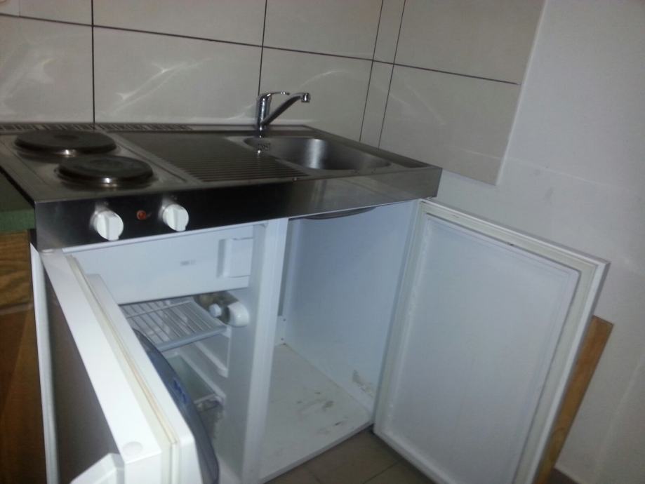 Prodajem mini kuhinju, slabo koristenu, sa hladnjakom i zamrzivacem, ima elektricni stednjak sa dva kuhala i sudoper!