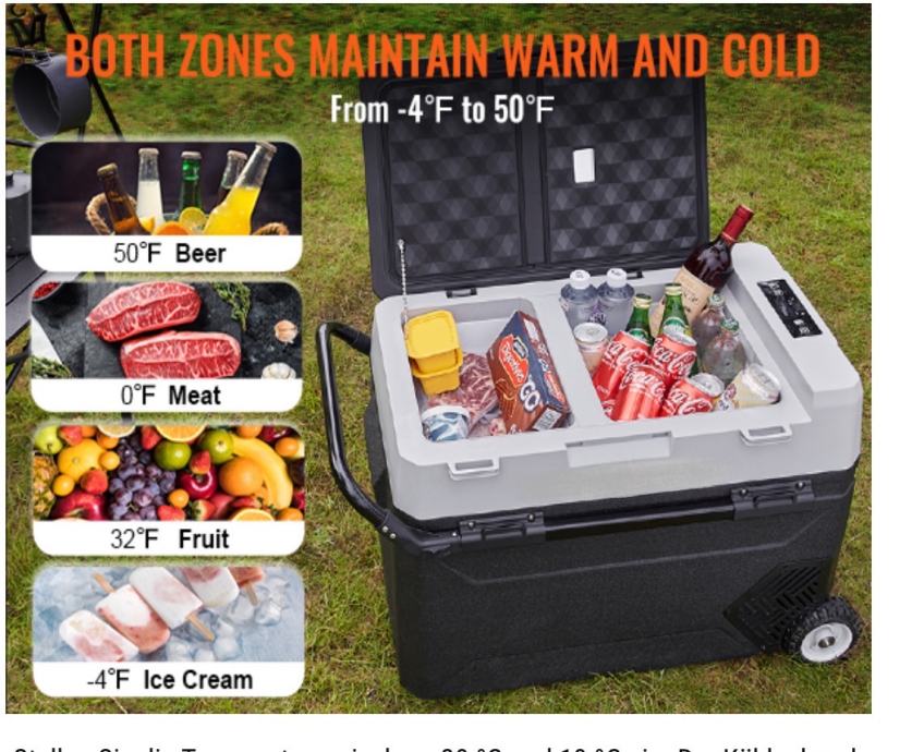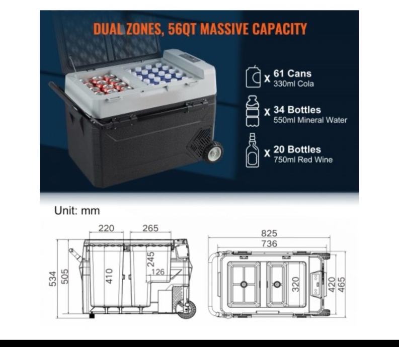 dvije zone mogu se zasebno podešavati u svrhu izolacije ili hlađenja, a temperatura se prema potrebi može kontrolirati između -4°F i 50°F (-20 do 10°C). S izdašnim ukupnim kapacitetom od 56 qt (53 L), možete jednostavno ohladiti i pohraniti izbor pića, voća, mesa, plodova mora i više, tako da uvijek imate sve što vam je potrebno za vaše dnevne avanture.
