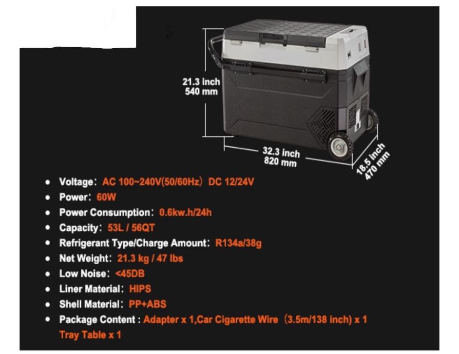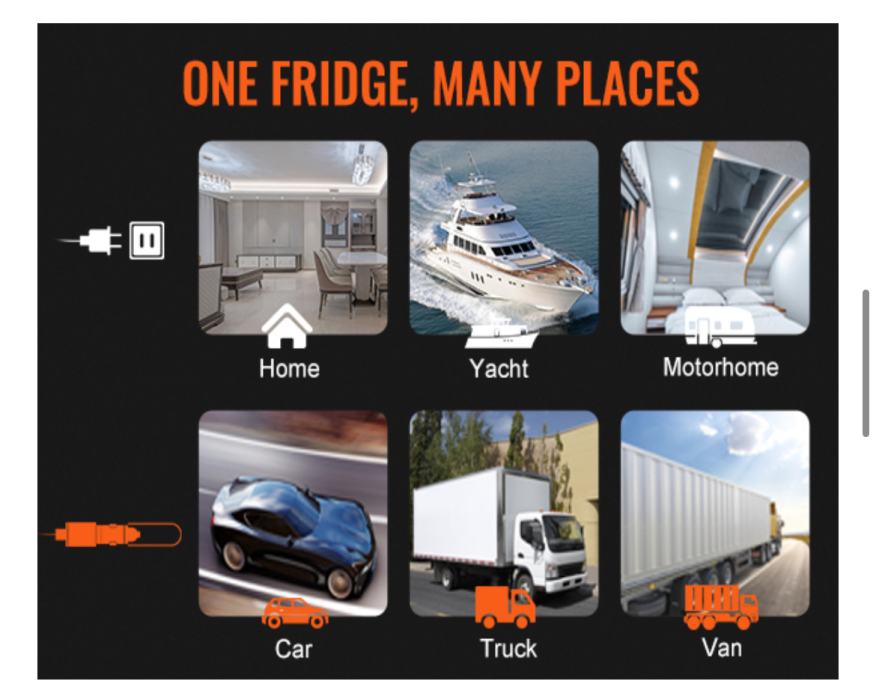 mini hladnjak opremljen je kabelom za upaljač od 138 inča (3,5 m) i kućnim utikačem, tako da se može koristiti u različitim okruženjima, kao što su: B.