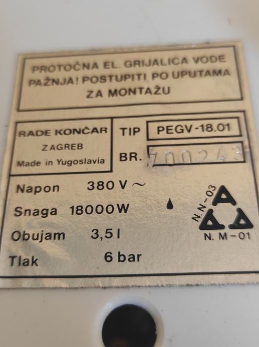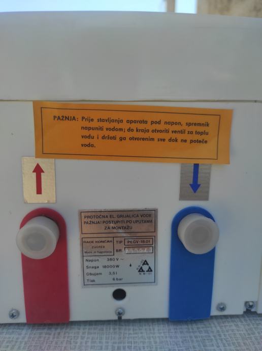 Protočni bojler Končar trofazni 18kw,stara YU proizvodnja ne korišteno,u original pakiranju sa priključcima za 120e.ne šaljem poštom.