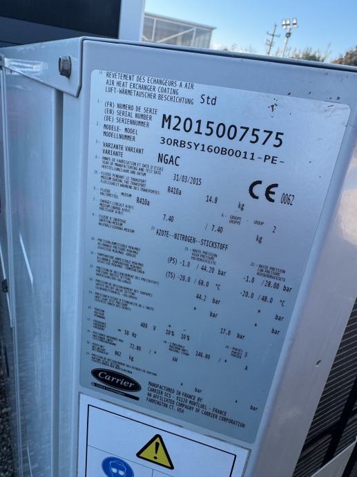 Rabljeni rashladnik vode Carrier. Rashladni učin 160kW.