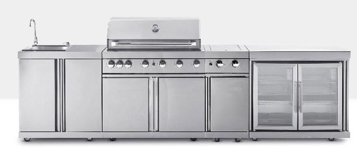 S klasikom nikada ne možete pogriješiti! ‘Stainless’ kolekcija je američki asortiman uniformiranih samostojećih vanjskih kuhinja od visokokvalitetnog nehrđajućeg čelika 304 s najsuvremenijom tehnologijom. Fleksibilni modularni sustav omogućuje vam kombiniranje svih modularnih jedinica na bilo koji način. Birajte između više od 15 modula – roštilja, hladnjaka, modula za pohranu, kutnih modula, pećnica za pizzu, modula sudopera i modula teppanyaki – ili odaberite jedan od paketa vanjske kuhinje.