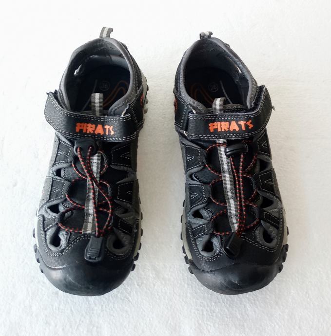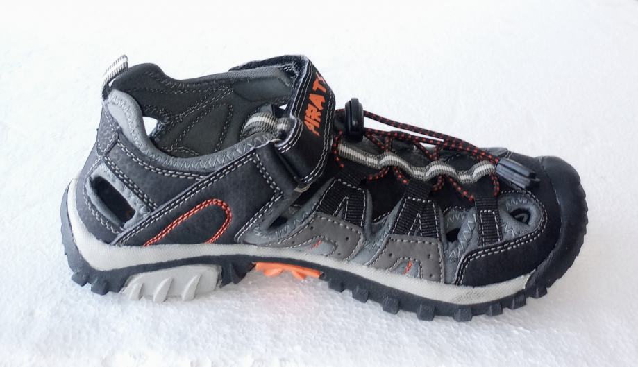 PIRATS trekking polusandale, zapravo unisex. Deklarirana veličina je 36, ali je gazište 23 cm pa su realno 35. Gornjište je postavljeno spužvasto, a iznad je imitacija kože. Imaju mekanu uložnu tabanicu. NEKORIŠTENE!