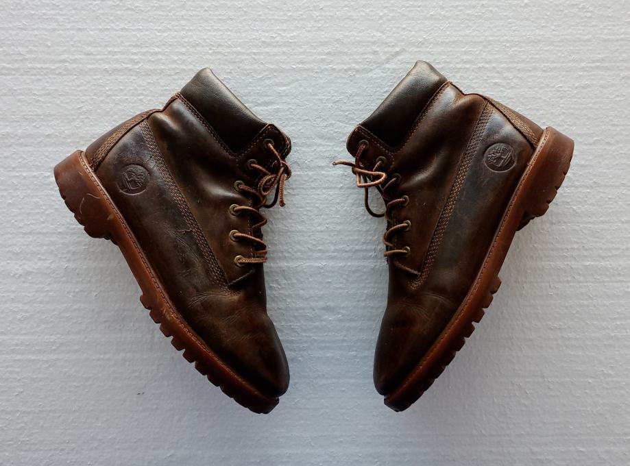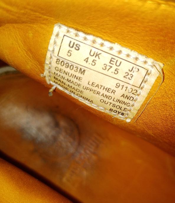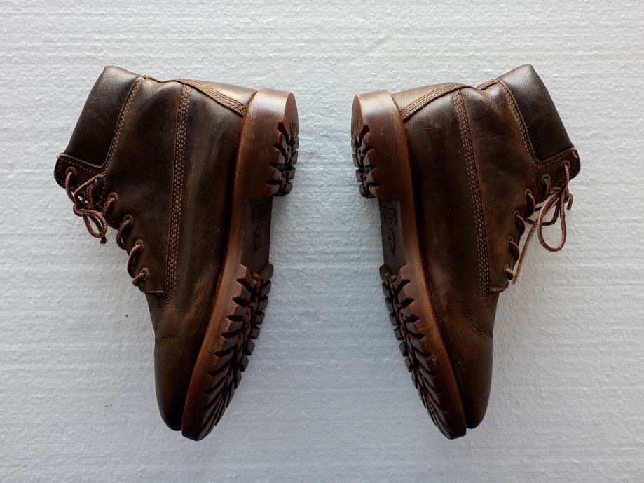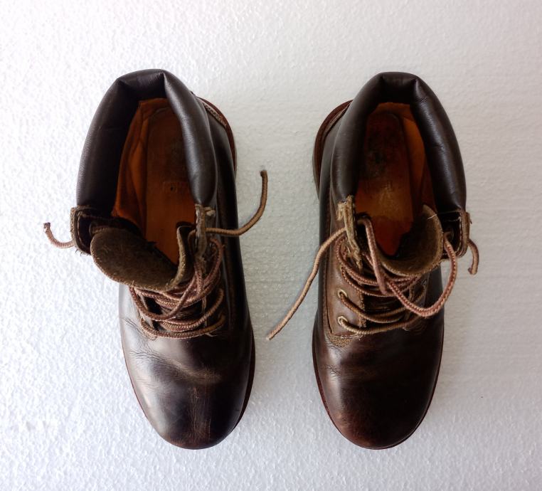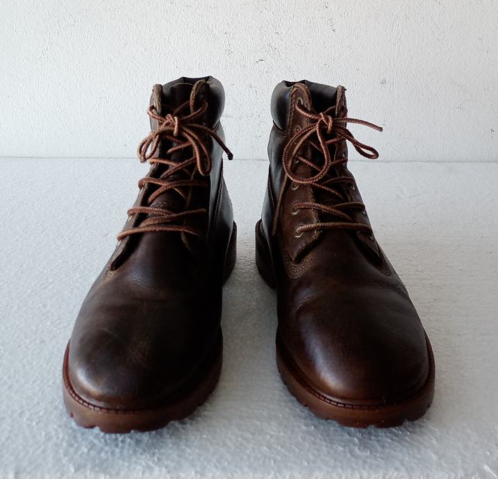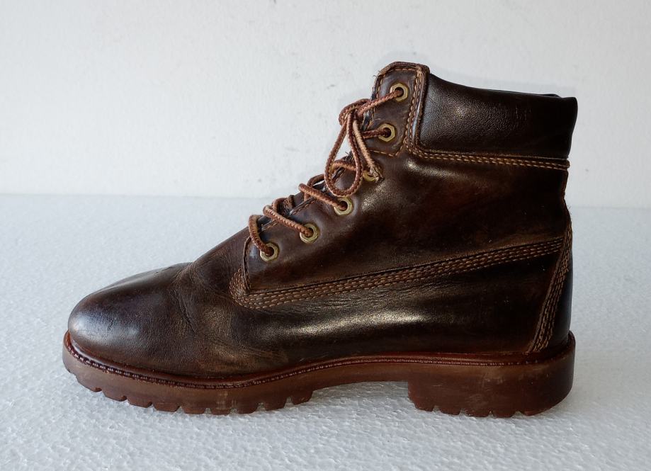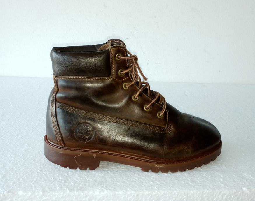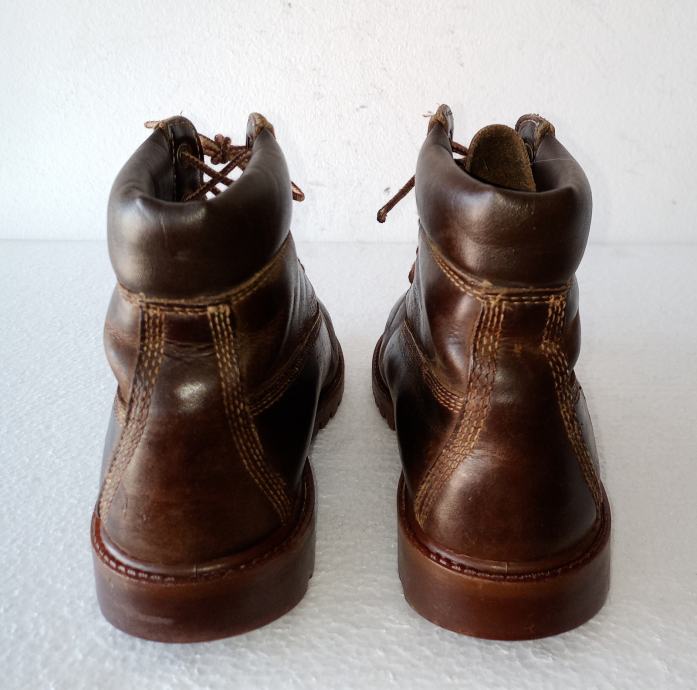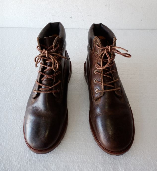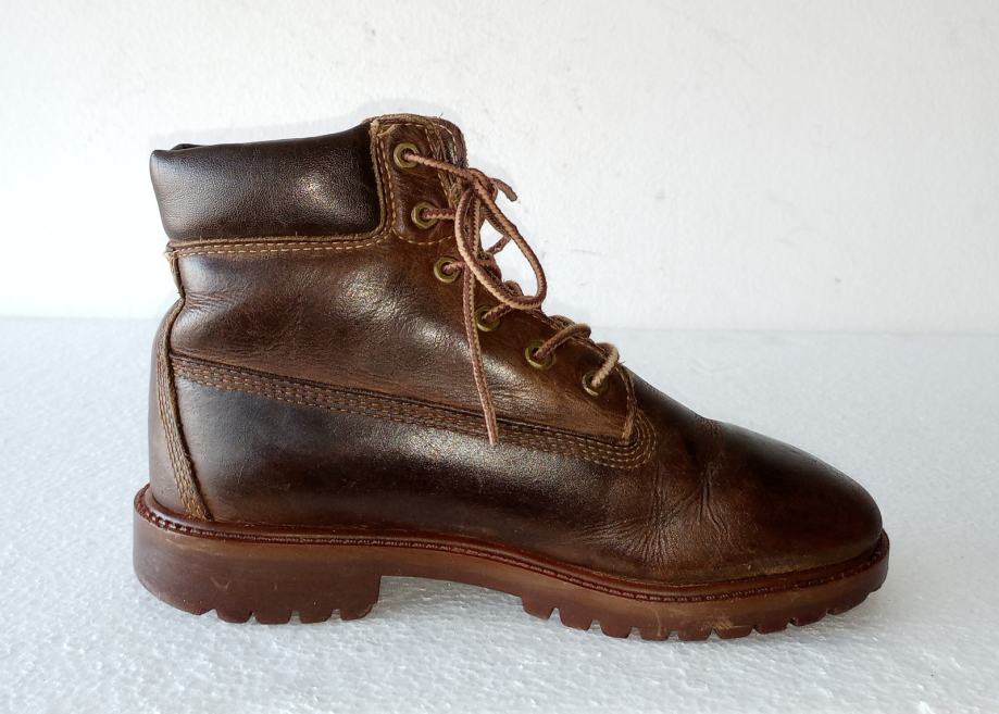 Timberland Boys gležnjače deklarirane veličine 37,5 (unutrašnje gazište 24 cm). Gornjište od prirodne glatke kože smeđe boje. Vodootporne. Iznutra isto prirodna koža. Također unutrašnji ulošci od prirodne kože. Vežu se vezicama kroz 6 rupica. Nošene, održavane i u odličnom stanju.