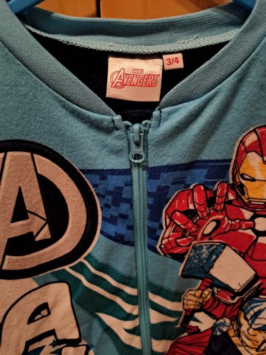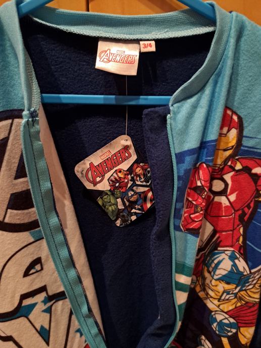 Dječji kombinezon od mikroflisa s dizajnom Marvel Avengers. Kombinezon ima rebraste manšete i gležnjeve, patentni zatvarač sprijeda i print sprijeda. Veličina 3 - 4, 104cm.