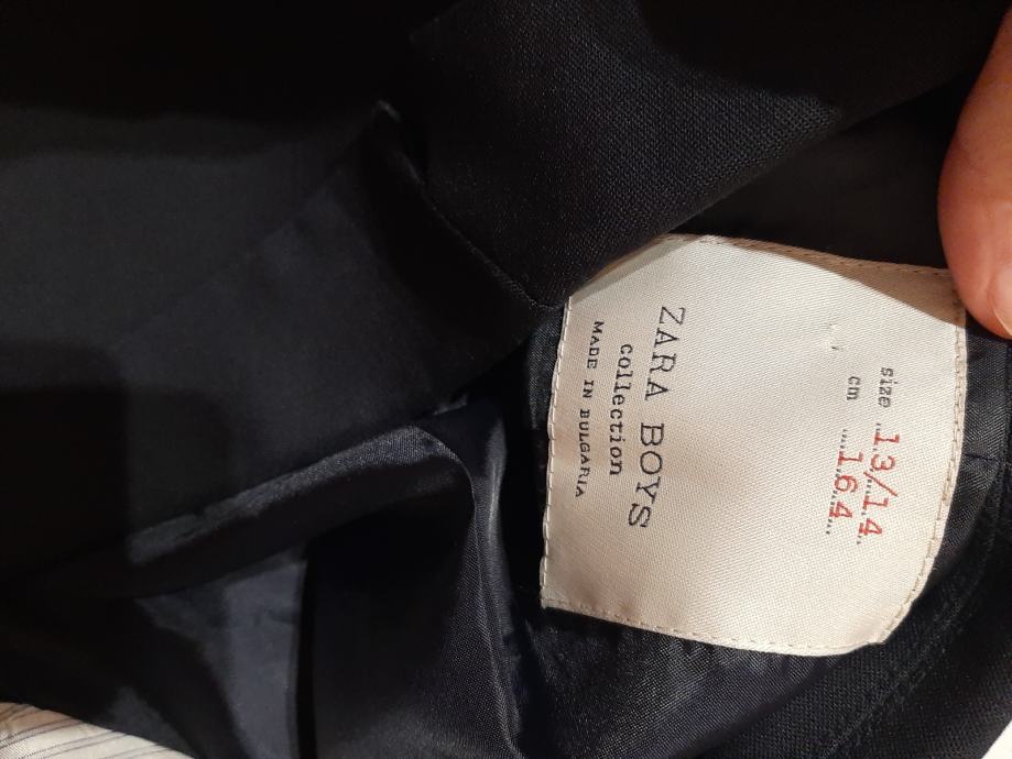 Novi dječji sako tamnoplave boje Zara. Jednom obućeni na sat vremena, kao novi. Vel. 164. Dužina od vrha ramena do dolje 64cm, širina od pazuha do pazuha 48cm, dužina rukava od pazuha do dolje 43cm