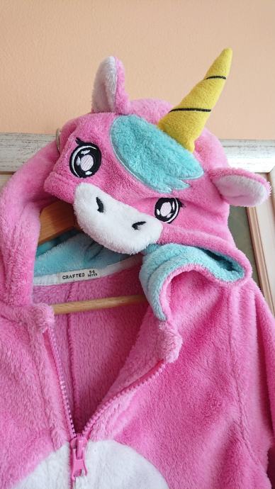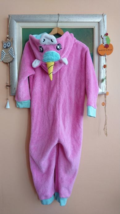 Jednorog kostim za maškare (ili jednodijelna pidžama) br. 104 / 110 za curice, savršeno i za igranje po doma, jako slatko stoji, mekano i udobno, lako se oblači - kao jednodijelna pidžama - kopčanje na jedan cif.